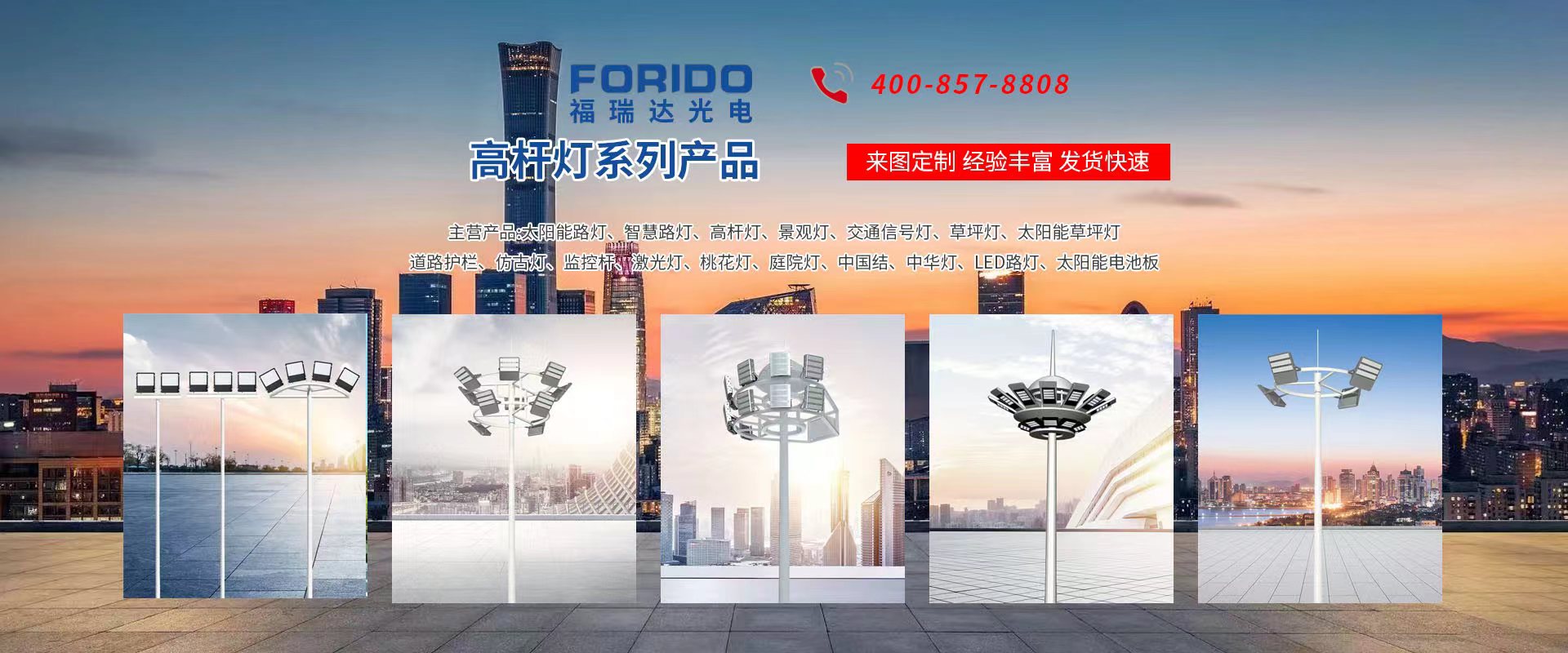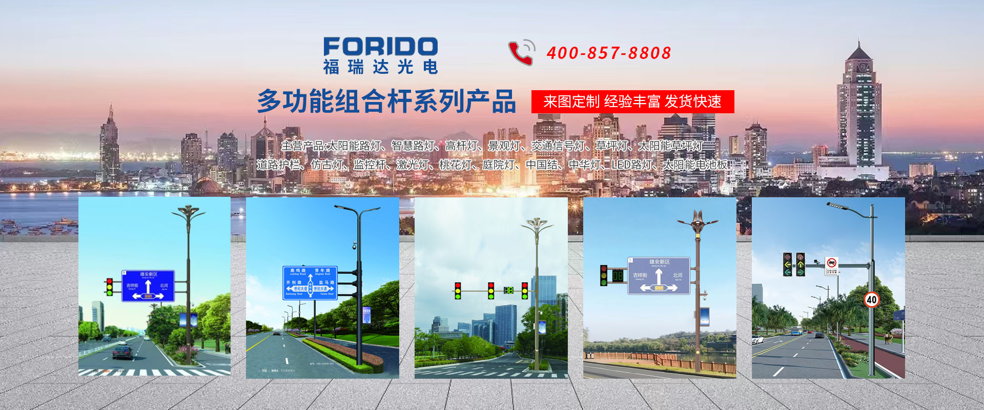 揚州福瑞達光電科技有限公司位于淮左名都歷史文化名城、中國路燈制造基地揚州市北郊菱塘工業(yè)園,公司占地面積76000平方米,注冊資金10518萬元,擁有高級技術嫻熟的員工280多人,擁有大型折彎機、激光切割、數(shù)控注塑機、壓鑄機、自動埋弧焊、氣焊、彩色粉末靜電噴塑等大型自動化設備,我公司是一家集設計、研發(fā)、生產、銷售、施工安裝服務為一體的戶外交通照明產品制造商,主要生產智慧路燈、太陽能路燈、LED路燈、高桿燈、景觀燈、交通信號燈、交通標志牌、通信鐵塔、路跨鋼結構、公交站臺、太陽能光伏組件、景點亮化、樓宇亮化工程的設計施工等。公司秉承開拓創(chuàng)新、銳意進取、精誠服務的企業(yè)精神,堅持以“誠信為本、技術為先、服務是金”的合作理念,我們憑借先進的制造工藝、優(yōu)質的產品質量、合理的市場價格和完善的售后服務贏得了廣闊的市場和客戶的信賴。 我公司已通過ISO9001質量體系認證、ISO14001環(huán)境管理體認證,CQC產品認證,中國節(jié)能產品認證,通過“CCC”強制性產品認證,具有市政總承包,照明,交安,設計等資質···